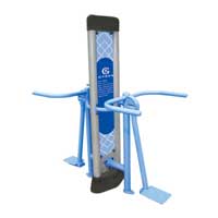 使用方法:面對(duì)器材,雙手握緊手柄,雙腳站在踏板上,腰部發(fā)力帶動(dòng)下肢做左右搖擺式運(yùn)動(dòng)。