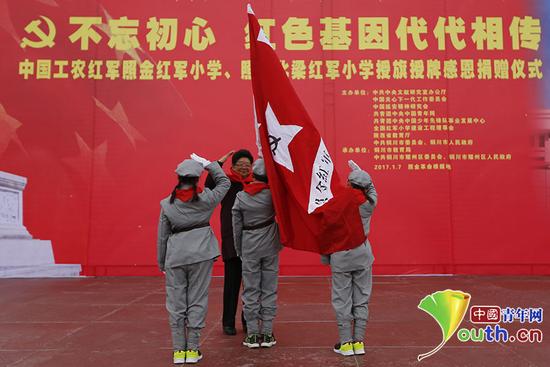 在1月7日舉行的中國工農(nóng)紅軍照金紅軍小學(xué)、照金北梁紅軍小學(xué)授旗授牌儀式現(xiàn)場,第十屆全國人大常委會副委員長、全國紅軍小學(xué)建設(shè)工程理事會榮譽(yù)理事長顧秀蓮親手為兩所紅軍小學(xué)的少先隊員授旗!≈袊嗄昃W(wǎng)記者 李拓 攝 中國青年網(wǎng)照金1月8日電(記者 李拓)“建設(shè)紅軍小學(xué)是發(fā)揚(yáng)紅軍精神、造福老區(qū)人民的大好事、大實(shí)事,也是培養(yǎng)理想堅定新一代的具體舉措。”1月7日,在全國紅軍小學(xué)建設(shè)工程理事會為陜西照金陜甘邊革命根據(jù)地兩所小學(xué)舉行的授旗授牌儀式上,銅川市耀州區(qū)區(qū)委書記楊宏偉這樣說。由此,在全國各地革命老區(qū)和中央蘇區(qū)建設(shè)的紅軍小學(xué)數(shù)量已達(dá)232所。 上世紀(jì)三十年代,劉志丹、謝子長、習(xí)仲勛等老一輩無產(chǎn)階級革命家創(chuàng)建了西北地區(qū)第一個山區(qū)革命根據(jù)地--陜甘邊照金革命根據(jù)地。而此次成為紅軍小學(xué)的照金鎮(zhèn)北梁小學(xué)原址正是位于北梁村的陳家坡會議舊址。2000年,這所創(chuàng)建于1955年的學(xué)校由老一輩革命家、習(xí)仲勛夫人齊心攜全家捐資15萬元遷址重建。 在儀式現(xiàn)場,第十屆全國人大常委會副委員長、全國紅軍小學(xué)建設(shè)工程理事會榮譽(yù)理事長顧秀蓮親手為兩所紅軍小學(xué)的少先隊員授旗。隨后,全國紅軍小學(xué)建設(shè)工程理事會副理事長兼秘書長方強(qiáng)宣讀了關(guān)于批準(zhǔn)建立“中國工農(nóng)紅軍照金紅軍小學(xué)、照金北梁紅軍小學(xué)”的決定。 接著,中國延安精神研究會常務(wù)副會長兼秘書長、全國紅軍小學(xué)建設(shè)工程理事會副理事長蘇希勝少將和全國紅軍小學(xué)建設(shè)工程理事會副理事長劉延寧分別為兩所紅軍小學(xué)授牌。 蘇希勝在講話中指出,紅軍小學(xué)最大的特色是一個“紅”字。紅字的根本要求是每位老師都要用自己的紅心培育出每個學(xué)生的紅心,“紅心的最高要求就是永遠(yuǎn)跟黨走,在學(xué)校成為德才兼?zhèn)涞暮脤W(xué)生,長大后成為建設(shè)社會主義需要的有用人才”。 在隨后的捐贈活動中,廣大共產(chǎn)黨員、老紅軍后代、革命烈士親屬和社會愛心單位為老區(qū)的孩子們送去了價值百萬元的款物和體育器材。陜甘邊革命根據(jù)地老一輩無產(chǎn)階級革命家親屬向照金兩所紅軍小學(xué)贈送了數(shù)字電影放映設(shè)備和60部紅色兒童影片。 此外,全國紅軍小學(xué)建設(shè)工程理事會副理事長劉延寧、賀雷生、常務(wù)理事郝清杰向兩所紅軍小學(xué)贈送了兩千冊圖書和小紅軍服裝。中共中央直屬機(jī)關(guān)團(tuán)工委書記、中直機(jī)關(guān)青年主席、全國紅軍小學(xué)建設(shè)工程理事會常務(wù)理事吳佳松,全國青聯(lián)常委徐勝杰為兩所小學(xué)全體學(xué)生贈送了運(yùn)動鞋和足球。中華全國體育基金會理事長吳奇代表基金會捐資40萬元為兩所紅軍小學(xué)添購體育器材,并表示將為全國所有紅軍小學(xué)援建體育活動健身中心。 儀式最后,顧秀蓮為北京芳草地國際學(xué)校與照金北梁紅軍小學(xué)結(jié)成手拉手學(xué)校進(jìn)行了授牌。周恩來紅軍小學(xué)總校長王其明為照金兩所紅軍小學(xué)贈送了價值數(shù)十萬元的電子教學(xué)器材。 > 據(jù)了解,“紅軍小學(xué)”建設(shè)始于2007年,由前中央領(lǐng)導(dǎo)和老一輩革命家、紅軍后代倡導(dǎo)發(fā)起,至今已經(jīng)走過整整十年。在黨中央親切關(guān)懷下,紅軍小學(xué)幫助老區(qū)的孩子們堅定了理想信仰并切實(shí)改變了他們的學(xué)習(xí)環(huán)境,同時也使“紅軍小學(xué)”成為了著名的紅色教育助學(xué)品牌。 歡迎撥打中國青年網(wǎng)新聞熱線010-57380651或發(fā)送新聞線索至郵箱youthpress@126.com;關(guān)注“中國青年網(wǎng)”(ID:youthzqw)微信公眾號,可直接對話記者,曝料線索。 (原標(biāo)題:全國紅軍小學(xué)再添陜甘邊老區(qū)新“火種” 至今已達(dá)232所) |